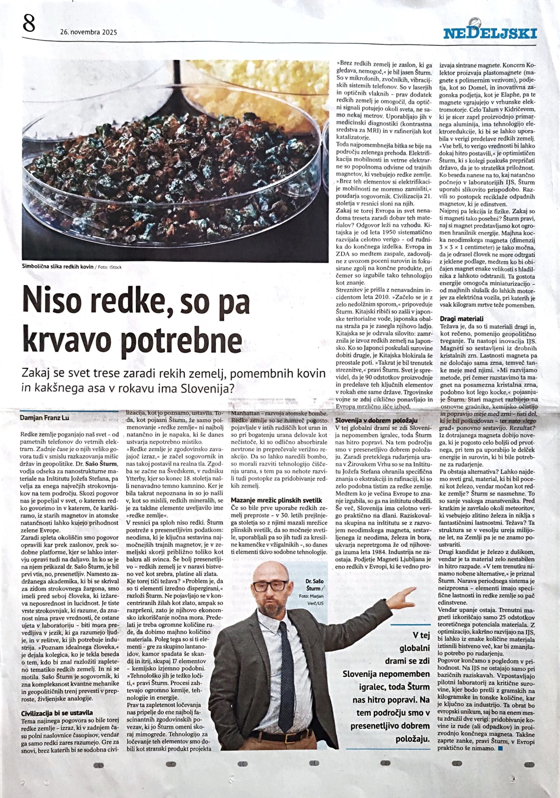 Prispevek na temo redkih zemelj, Nedeljski dnevnik, 26.11.2025